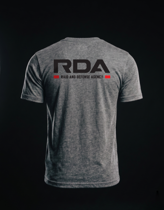 Official Raid and Defense Agency T-shirt in gray.